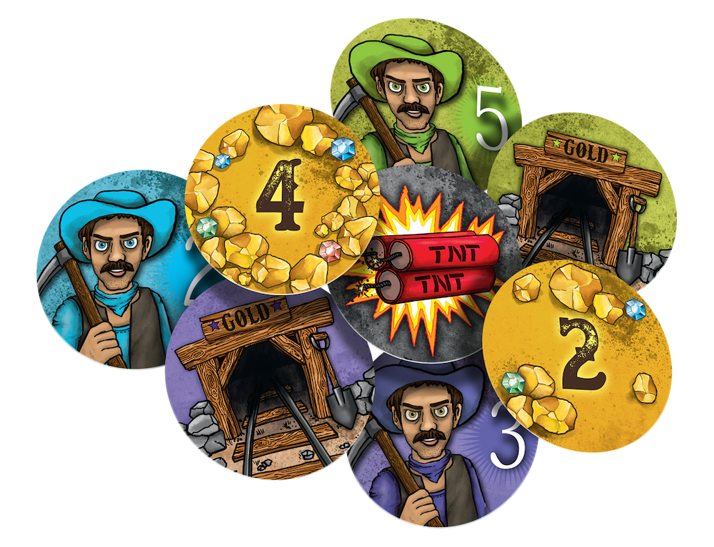 W grze Gold odwiedzamy kopalnię złota złożoną z losowo rozmieszczonych, zakrytych kart. W swojej turze każdy z uczestników odkrywa 2 wybrane karty, wśród których znajdziemy symbole poszczególnych poszukiwaczy, cenne bryłki oraz pułapki w postaci lasek dynamitu. Aby wygrać, musimy wykazać się nie tylko doskonałą pamięcią (aby w odpowiedniej chwili wrócić do dostępnych kart), ale też sprytem, by umiejętnie eliminować innych uczestników.