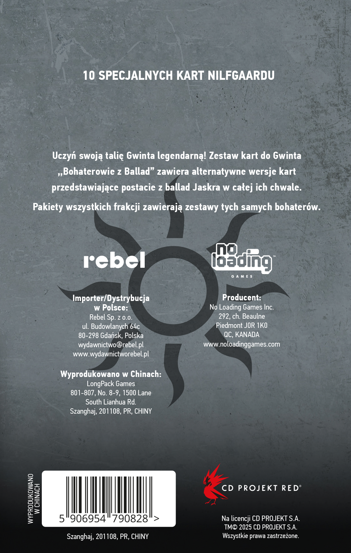 Cirilla, Geralt z Rivii, Triss Merigold, Yennefer z Vengerbergu i inni bohaterowie opowieści Jaskra zaprezentowani w całej swojej chwale! Gwint: Legendarni bohaterowie z ballad - Nilfgaard zawiera zestaw 10 alternatywnych wersji kart, które możesz dołączyć do swojej talii.