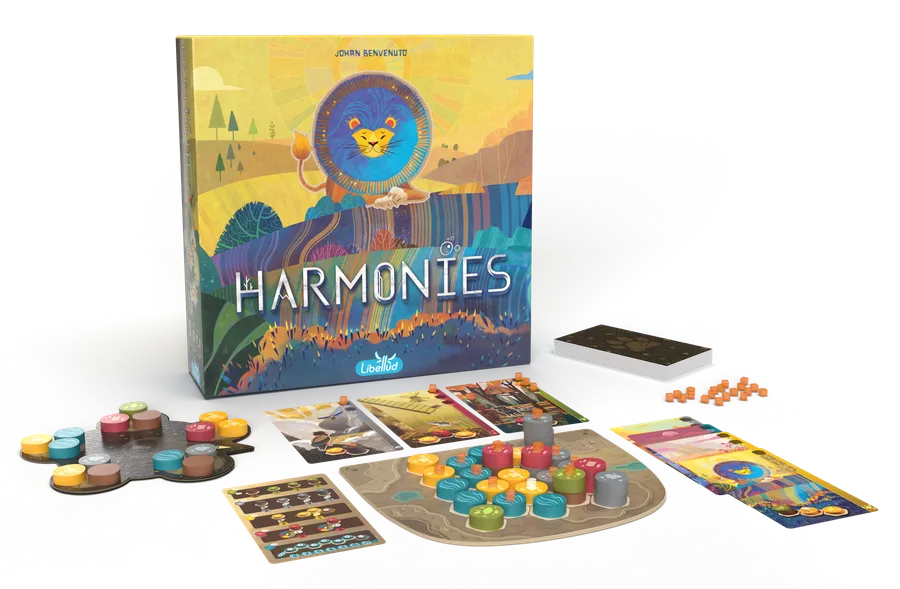 Stwórz miniaturowy świat, w którym zwierzęta żyją w całkowitej harmonii z naturą! Harmonies to przepięknie ilustrowana gra strategiczna, w której każda z podejmowanych decyzji może okazać się kluczowa dla ostatecznego wyniku. Podczas zabawy umieszczamy kolorowe elementy krajobrazu na swoich planszetkach i tworzymy niezwykłe krainy. Aby wygrać, musimy zdobyć jak najwięcej punktów, w przemyślany sposób zakładając siedliska i przyciągając do nich zwierzęta.