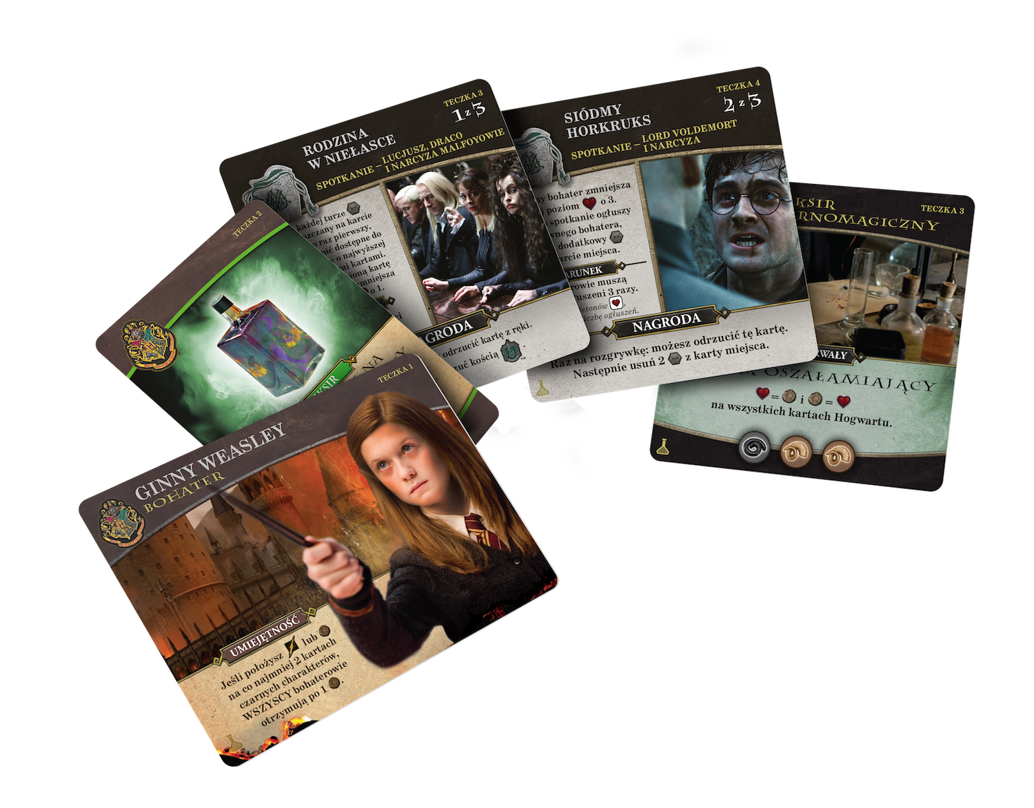 To kooperacyjna gra karciana w której, jako HARRY POTTER™, RON WEASLEY™, HERMIONA GRANGER™ i NEVILLE LONGBOTTOM™, stawiacie czoła serii mrocznych zdarzeń w tytułowej szkole dla czarodziejów. W trakcie gry zmierzycie się z drużyną czarnych charakterów, którzy stopniowo, miejsce po miejscu, próbują podporządkować sobie świat czarodziejów.