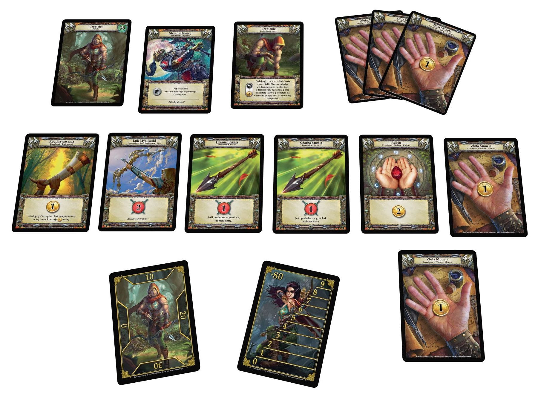 Zestaw zawiera 15 kart: kartę postaci Tropiciel, karty zdolności Strzał w Głowę oraz Tropienie, dwie unikatowe karty do zliczania punktów Życia oraz 10 kart służących jako nowa Talia Osobista (Rubin, Róg Przyzwania, Łuk Myśliwski, dwie Czarne Strzały oraz pięć Złotych Monet).