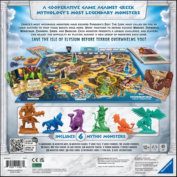 Horrified: Greek Monsters is a standalone game that features gameplay similar to 2019's Horrified. In this co-operative game, players become avatars of the Greek gods and must work together to re-capture these monsters.