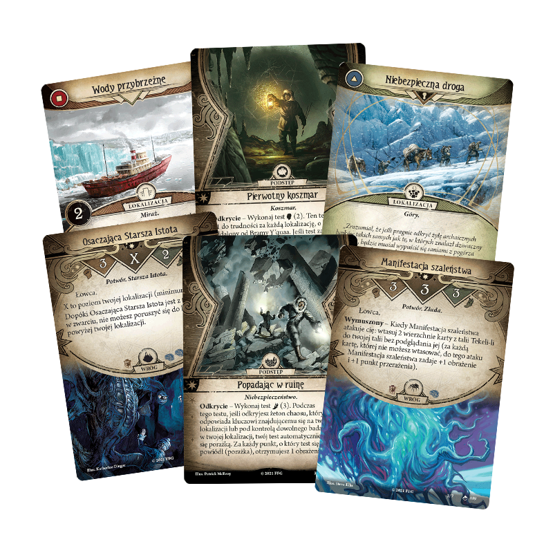 To rozszerzenie kampanijne wprowadza nowy rodzaj żetonów chaosu! Żetony mrozu reprezentują trudną, wymagającą pogodę i zdradzieckie warunki, które będą wam towarzyszyć podczas podróży przez dziką Antarktydę.