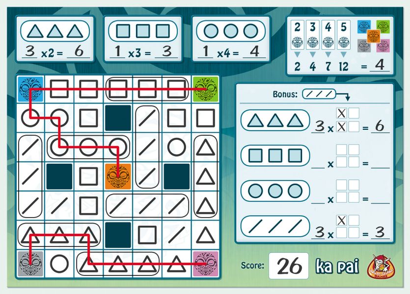 Ka Pai is a quick game with no turns. Everyone must draw the symbols from the rolled dice. Will you be able to complete your sheet in such way that you score the most points?