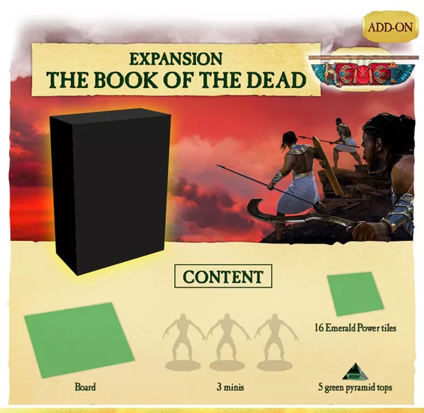 In Kemet: Blood and Sand, the gods of Ancient Egypt war with each other in epic battles using every tool at their disposal. Some are even willing to consult the Book of the Dead, seeking forbidden knowledge of the Beyond, and the ability to call upon darker, more powerful, and more dangerous powers…