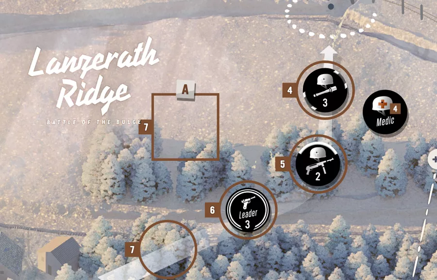 Lanzerath Ridge is a solitaire wargame that takes places on the first day of the Battle of the Bulge, during the Second World War. In the game, you take control of a small group of American soldiers. Under your command, the Americans must fend off the relentless attacks from German paratroopers and fusiliers. Your goal is to recreate the incredible historic accomplishment of the American soldiers by defending the town of Lanzerath, Belgium and delaying the advance of an entire SS Panzer Division.