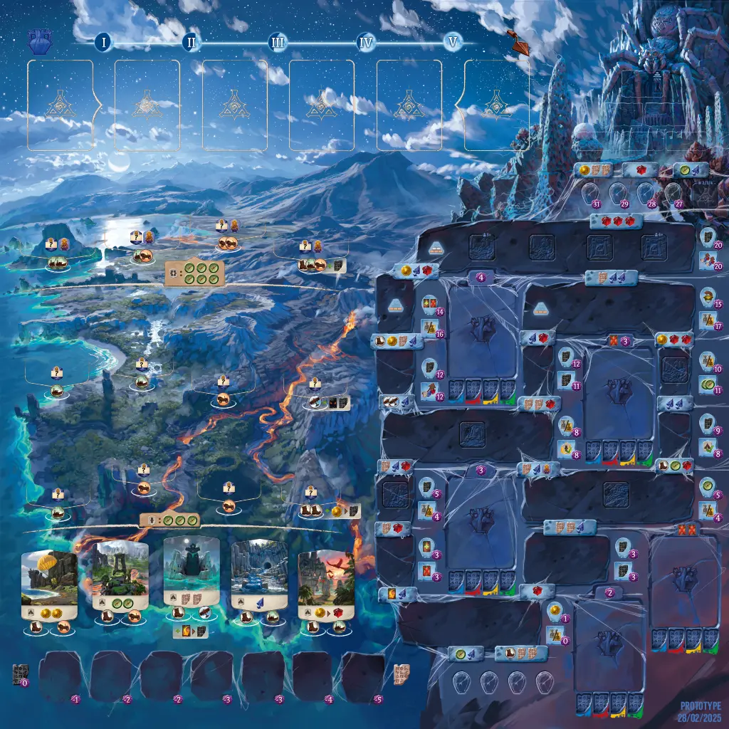 Inside the “Adventure Chest”, we’ve included a fresh addition to the world of Arnak, the new expansion “Twisted Paths”. This expansion brings a brand new double-sided map that is bigger than in the base game and includes two new research tracks, each with unique mechanisms and components (like brand new temple tiles or new resources — dark tablets). In addition to new maps, the expansion contains new guardians, sites, and assistants, and also some solo content — Rival tiles for the new maps, as well as Purple Rival tiles and Rival Objectives, two mini expansions we’ve previously released online as print-and-play.
