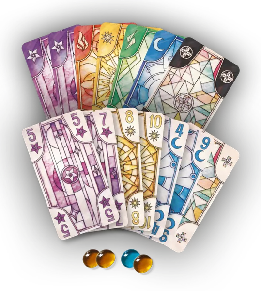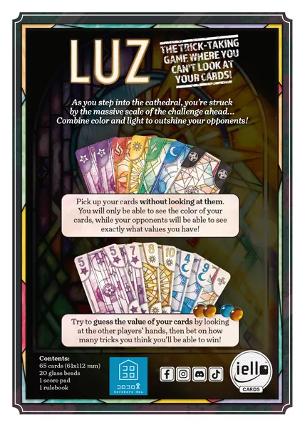 In this trick taking game, hold your cards in your hand without looking at them. While you know the suits, only your opponents know the values of your cards. Look at your opponents' hands to deduce the value of your cards and bet the number of tricks you think you will win.