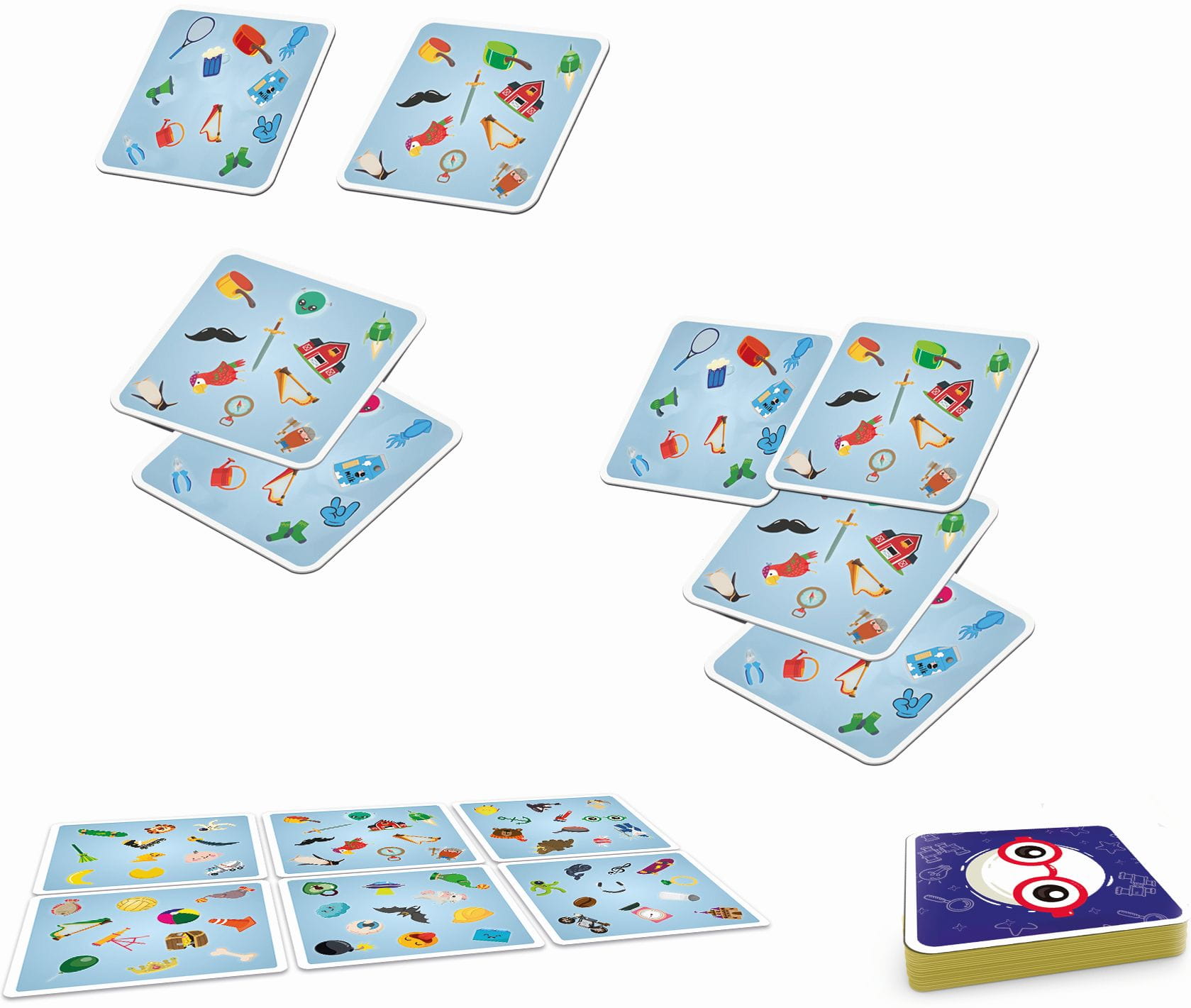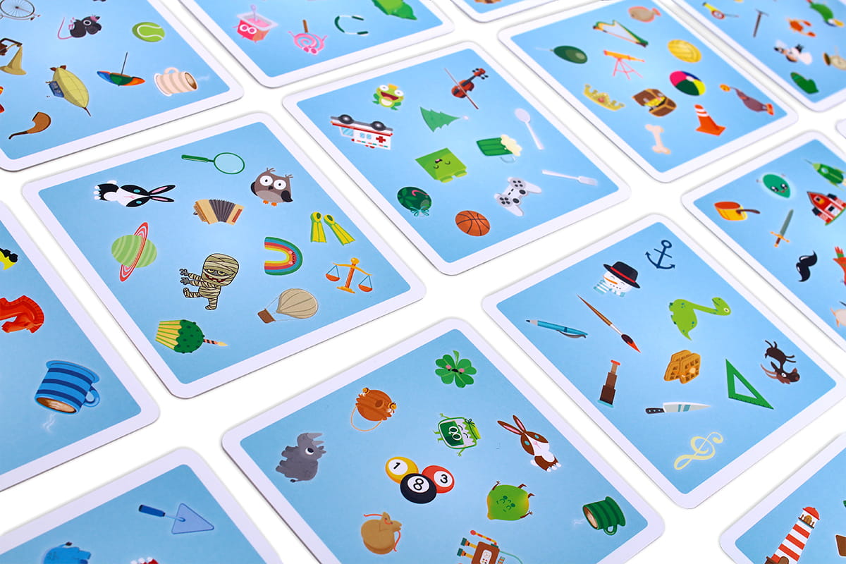 - Każdy z uczestników odsłania po jednej ze swoich kart i… zaczynamy zabawę! Gracze muszą wykazać się spostrzegawczością i znaleźć parę takich samych przedmiotów, które różnią się jedynie kolorem. Osoba, której się to uda, zgarnia wszystkie odkryte karty ze stołu.