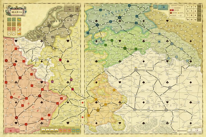 Maria to gra przeznaczona dla 3 graczy. Jeden z nich kontroluje Austrię, drugi Francję i Bawarię, trzeci zaś przyjmuje schizofreniczną rolę kontrolowania wroga Austrii - Prus oraz jednocześnie Armię Pragmatyczną (austrackich sojuszników). Jest to możliwe dzięki podziałowi areny zmagań na dwie części: Flandrię i Czechy. Reguły zawierają także wariant dwuosobowy.