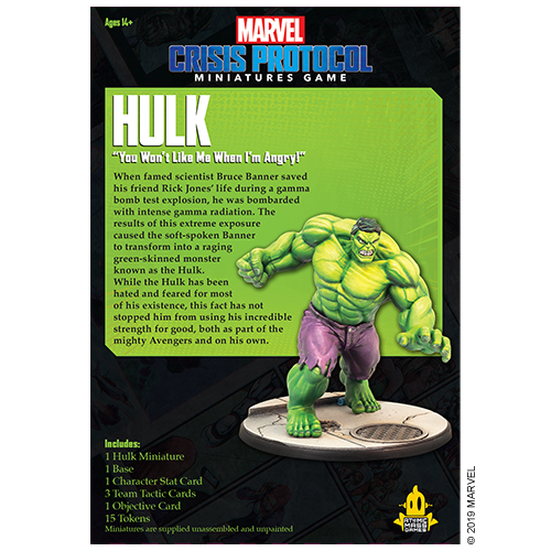 Marvel: Crisis Protocol – Hulk allows you to add one new character to the Marvel: Crisis Protocol miniatures game.