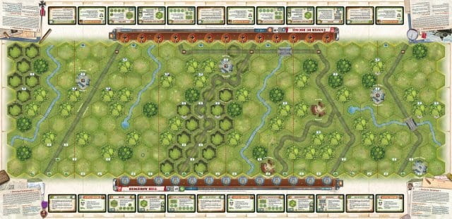 Seria Battle Map wprowadza nowy format do waszych rozgrywek Memoir ’44. Dzięki Battle Map będziecie mogli szybciej oraz łatwiej przygotowywać i rozgrywać scenariusze Memoir ’44. Każda dużego rozmiaru mapa jest gotowa do gry – nadrukowano na niej wszystkie elementy terenu, przeszkody oraz położenie jednostek, wystarczy więc postawić figurki i rozpocząć rozgrywkę. W zestawie znajdziecie też zasady dotyczące scenariuszy, karty podsumowujące tereny i jednostki, a także tło historyczne.