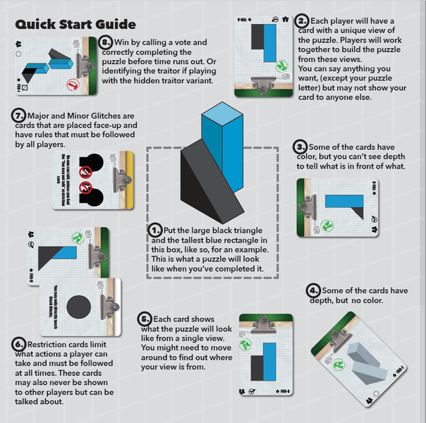 Mental Blocks features sixty puzzles: thirty "family mode" puzzles and thirty "challenge mode" puzzles that ramp in difficulty. For an even wilder game, you can add a traitor to the table to block your block-building...