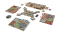 - Silna interakcja między graczami rywalizującymi o obszary planszy, kafle budynków i mieszkańców miasta;