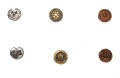 Te cynkowe monety pokryte zostały grubą warstwą odpowiednio niklu (srebrne), mosiądzu (złote) i miedzi (miedziaki). Powłoki są oksydowane, dzięki czemu wyglądają jakby używane były przez lata.