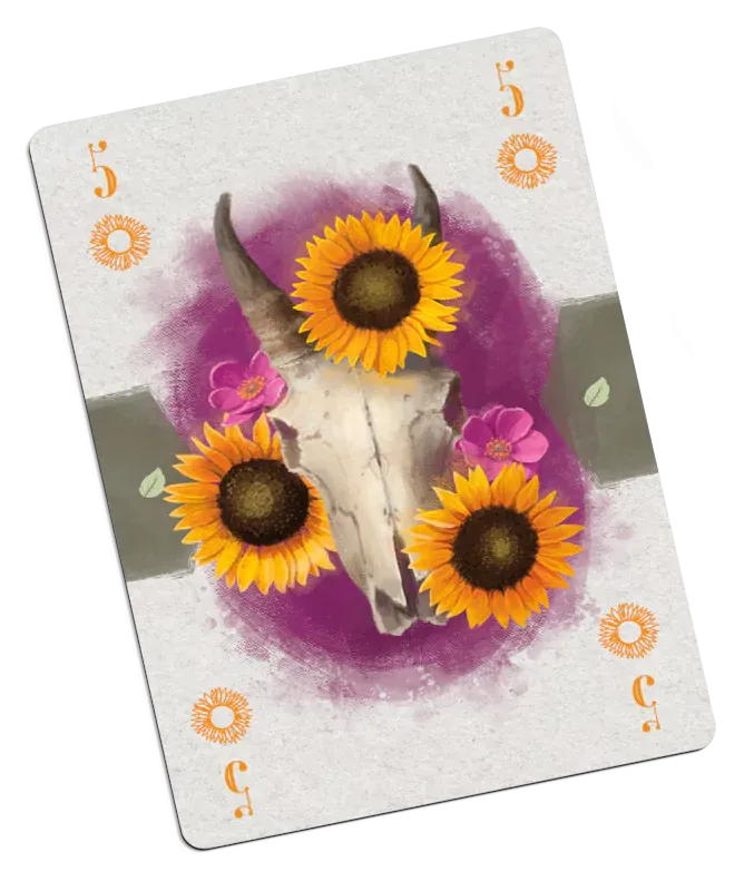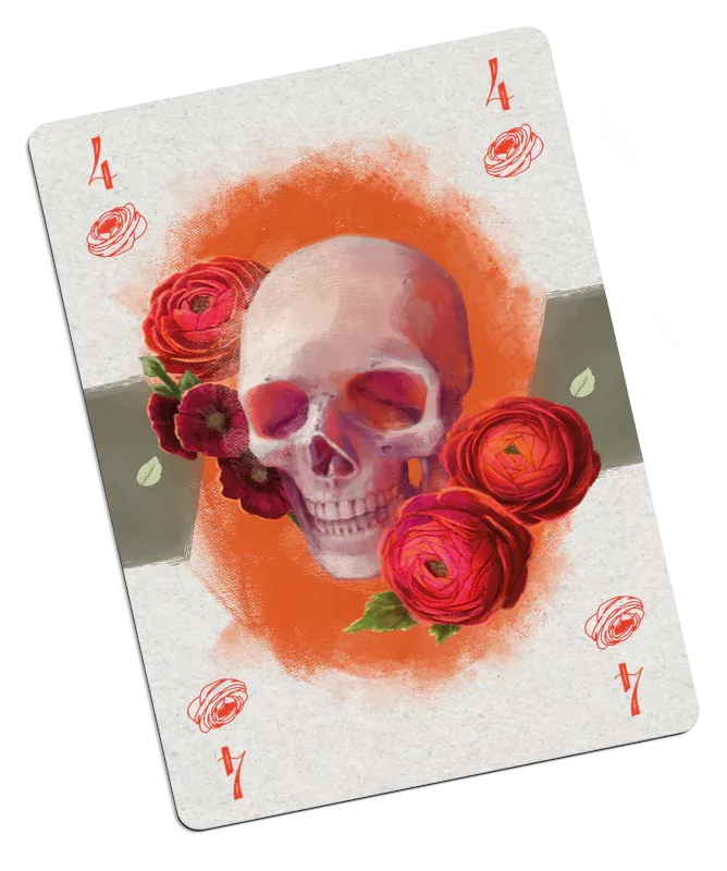 Mori is the Latin word for death and the Japanese word for forest. Both of these interpretations are represented in this artwork of this card game.
