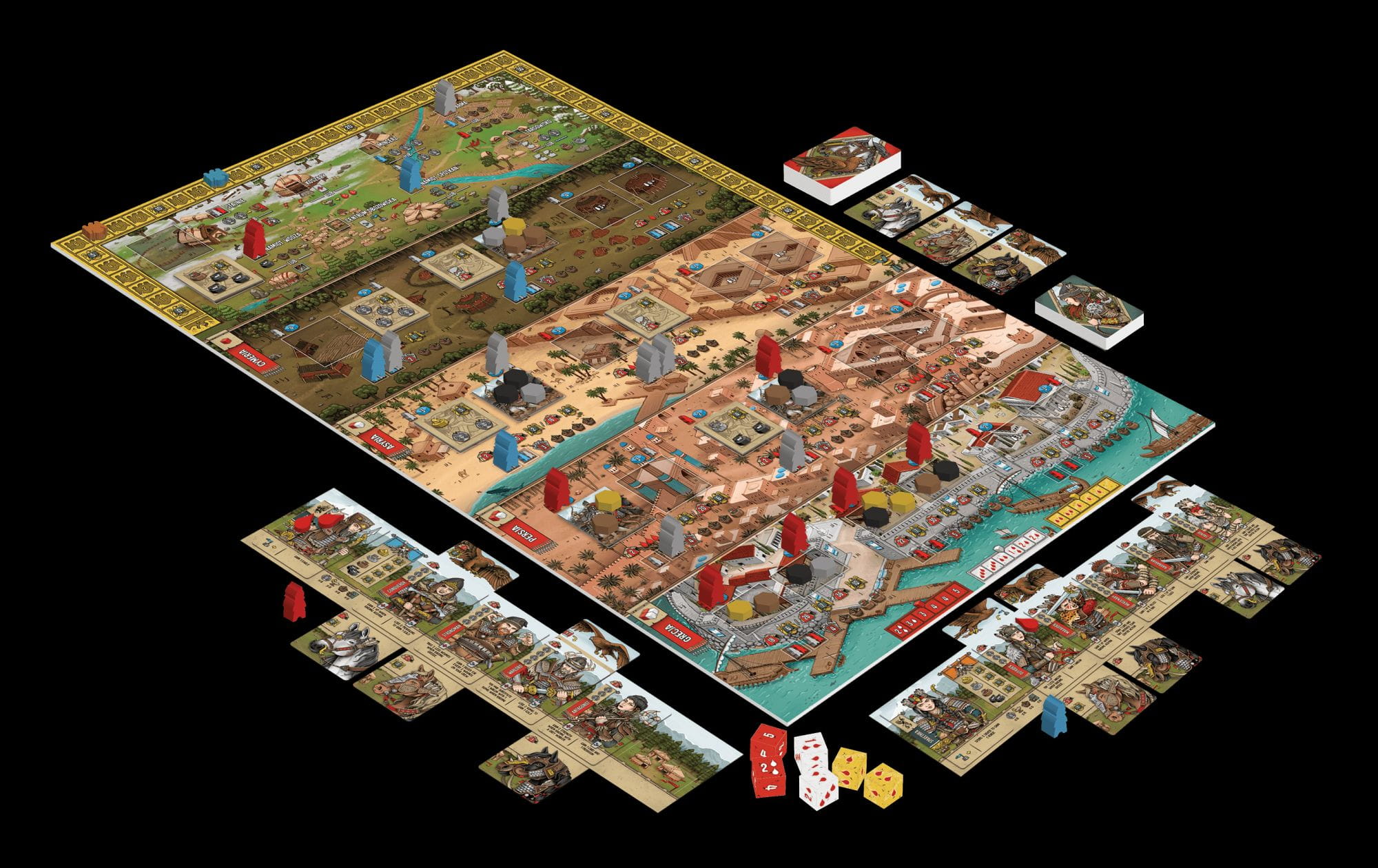 - Ponad 200 drewnianych komponentów, duża, różnorodna plansza i wspaniałe wizerunki Scytów wraz z końmi oraz orłami;
