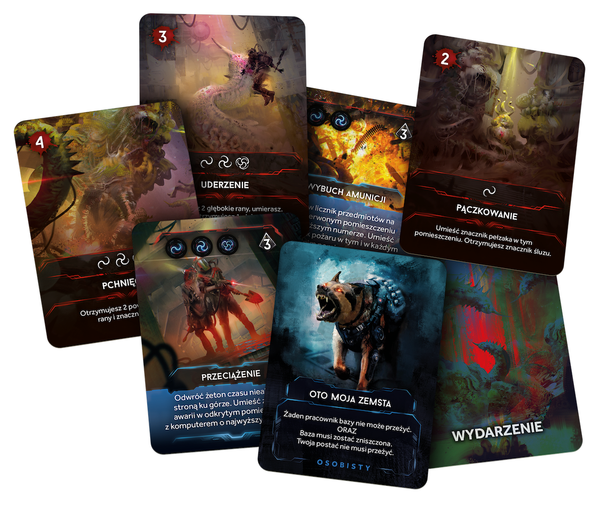 W pudełku znajdziesz karty, dzięki którym przeniesiesz na Czerwoną Planetę Karnomorfy, Koszmary i Pokłosie. Rozszerzenie zawiera też inne elementy, w tym dodatek Chytrydzi, wprowadzający nową rasę intruzów: ociekające śluzem, żarłoczne grzyby, które pokrywają ściany pomieszczeń, a ich zarodniki docierają nawet tam, gdzie nie sięga wyobraźnia.