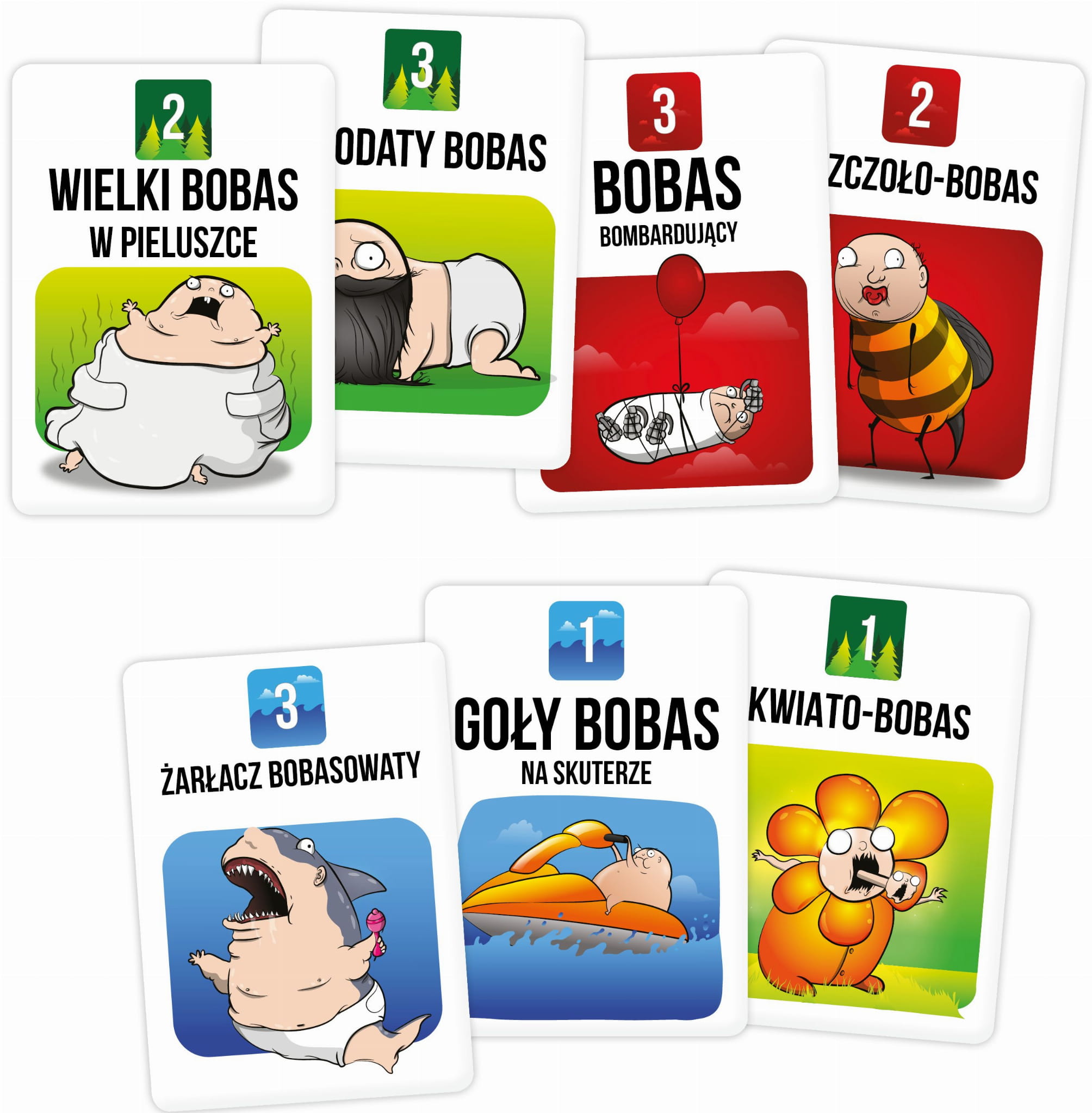 - Gra kończy się w momencie, gry wyczerpią się karty. Wygrywa uczestnik z najwyższą sumą siły pokonanych bobasów.