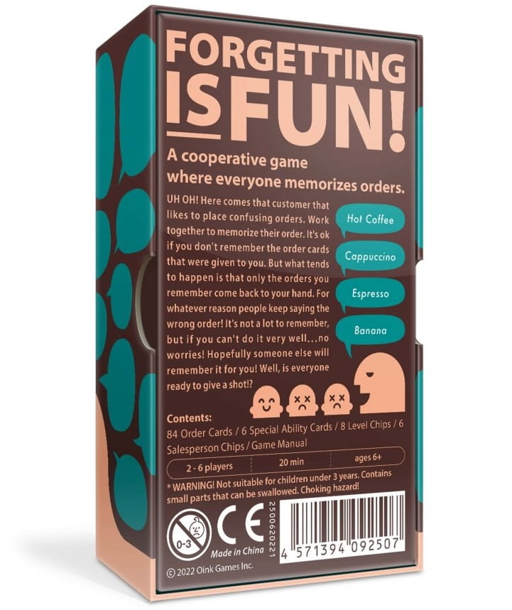 UH OH! Here comes that customer who likes to give confusing orders. Work together to memorize their order. It's ok if you don't remember the order cards that were given to you. But what tends to happen is that only the orders you remember come back to your hand. For whatever reason people keep saying the wrong order!