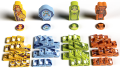 At the core of Oros is the unique ability to shift, move, build up, erupt, and reposition the land within an infinitely connected play environment. This mechanic turns every action into a puzzle of creative problem solving, abstract thinking, and a constantly evolving strategy. Another chief aspect of the game is the player mat which uses a minimal worker placement mechanic to govern action opportunity. The mat also maintains an action economy that evolves differently for each player as they invest their gained wisdom into a variety of action improvements. Because of these core aspects, there are dozens of strategies for players to explore, and every game plays out in a different, yet competitive way.