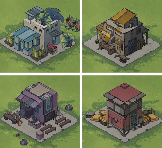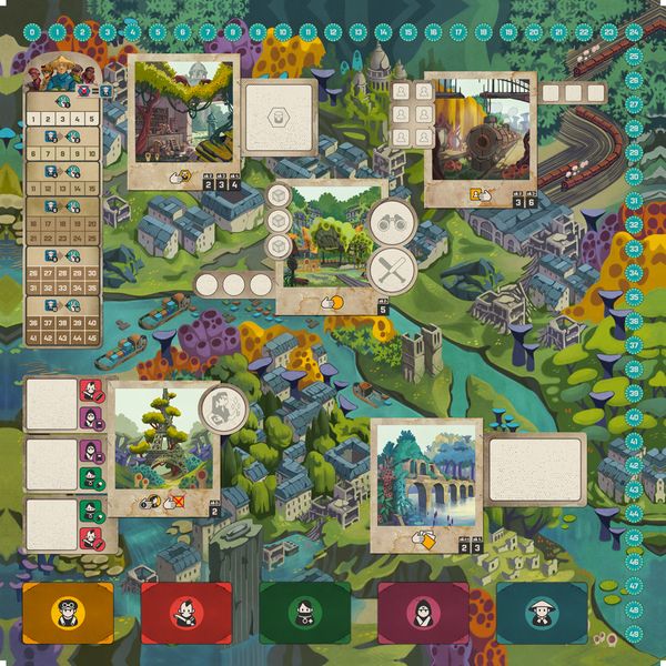 Paris: New Eden features a clever dice-drafting mechanism that allows you to recruit survivors. Over the span of one year, you will endeavor to build your shelter and overcome the array of obstacles that you encounter along the way. The dice allow you to recruit survivors of different types: tinkerers, brawlers, healers, sages, farmers, jacks-of-all-trades, or even useless survivors. At the end of each season, your survivors allow you to bid to improve your shelter. These survivors are recruited in five key areas and central squares of the Paris that we know, each one with different abilities:
