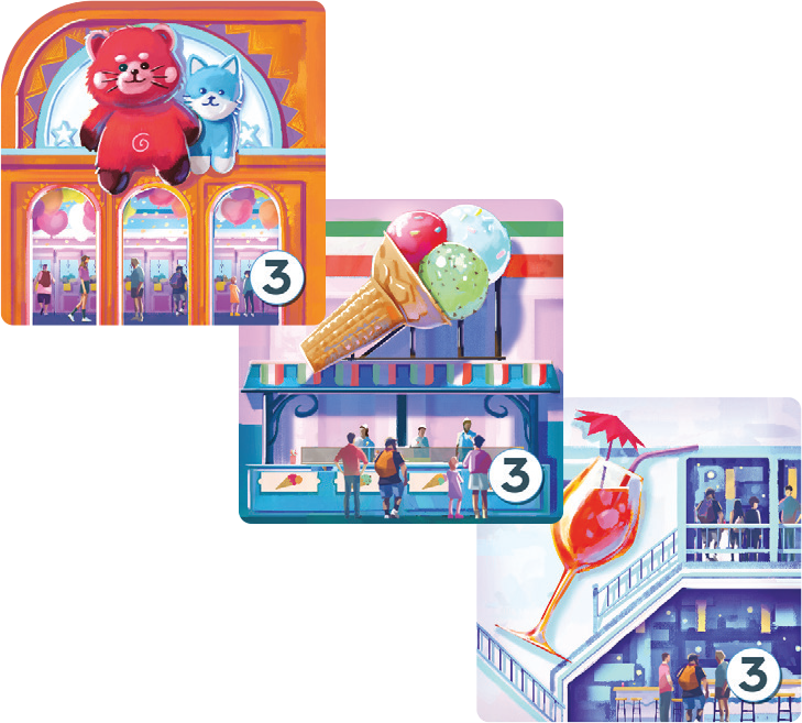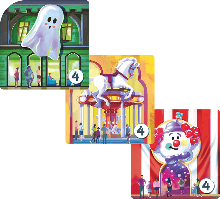 - Rozgrywka składa się z 4 rund, w czasie których gracze będą rezerwowali poszczególne sektory parku i wznosili na nich wybrane atrakcje.