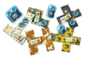 - Przed rozpoczęciem rozgrywki wykładamy kafelki w kole wokół planszy czasu, a następnie ustawiamy między nimi neutralny pionek. Jego położenie wskazuje, które fragmenty materiałów możemy aktualnie zdobyć – dostępne są pierwsze 3 przed pionkiem. Za każdym razem, gdy gracz zabiera kafelek z puli, umieszcza pionek na jego miejscu, wyznaczając tym samym nową dostępną pulę.