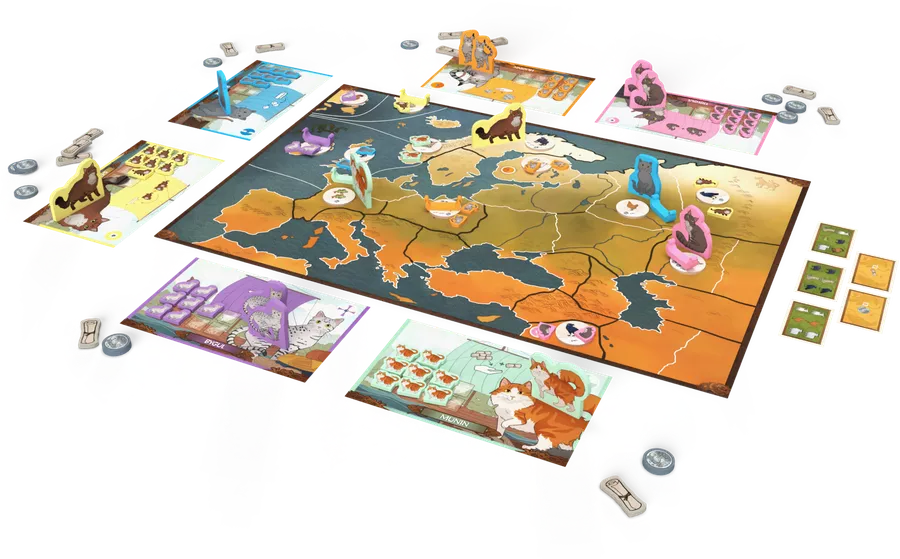 Viking ship had cats with them on the voyages, across seas and along rivers. In Pax Viking Junior, you are such a cat family! On a Viking ship traveling across seas and along rivers. You win by collecting silver, gold and jewels and by making friends among other animals around Europe. The exact combination you need differs from game to game, so you can many times with different experiences.