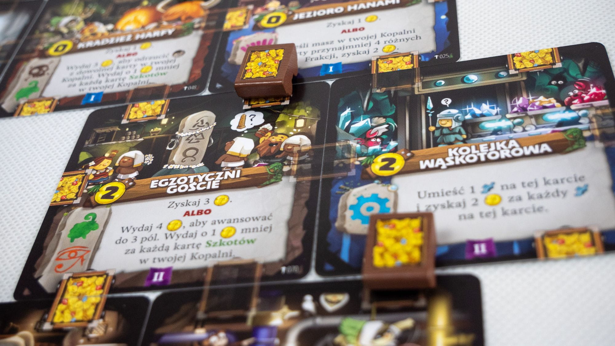 Warto awansować na torach Postępu! Czekają na nich bonusy, które pomagają rozwinąć kopalnię, aktywować powiązania między kartami, wykręcić jeszcze lepsze kombosy, albo zdobyć dodatkowe punkty zwycięstwa.