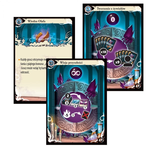 Dodatek zawiera 40 nowych kart Mocy, które można łączyć ze 100 kartami z gry podstawowej. Unikalne 10 kart Czarów sprawi, że każda rozgrywka stanie się jeszcze bardziej odmienna od poprzedniej! 12 żetonów zdolności specjalnych wyróżni Twojego czarnoksiężnika spośród reszty.