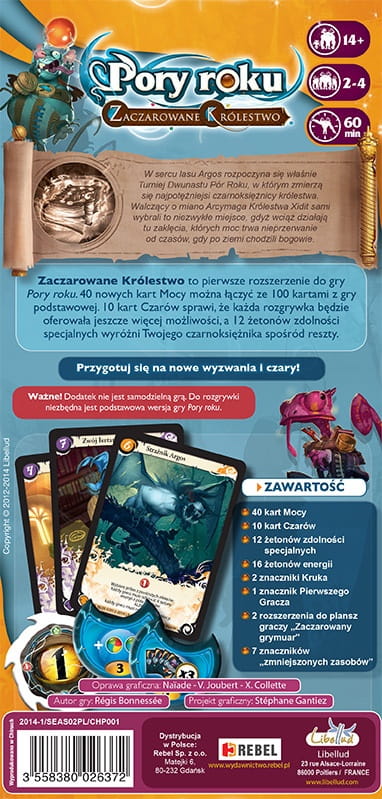 Dodatek równie bajeczny co podstawa gry. Grafiki utrzymane w stylu Seasons. Wspaniała jakość wykonania. Przydatny znacznik pierwszego gracza. Nowe karty wprowadzają odrobinę zamętu - do tej pory wszystkie karty były korzystne a w zaczarowanym królestwie pojawiają się również takie z negatywnym skutkiem dla "przywołującego". Dla mnie sporym pozytywem jest to, że pomimo dodatkowych kart czaru oraz żetonów specjalnych czas rozgrywki zbytnio się nie wydłuża. Czekaliśmy na polskie wydanie ... i nie zawiedliśmy się :)