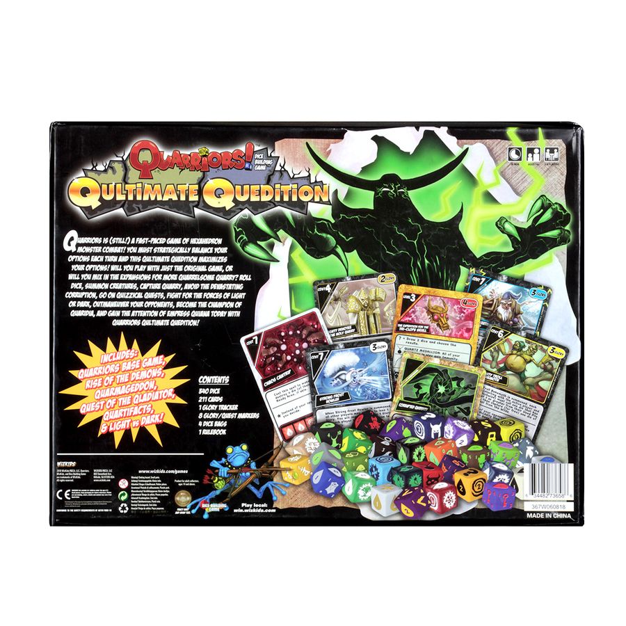 Quarriors! Qultimate Quedition consists of the Quarriors! base game and all previously released expansions and promotional cards.
