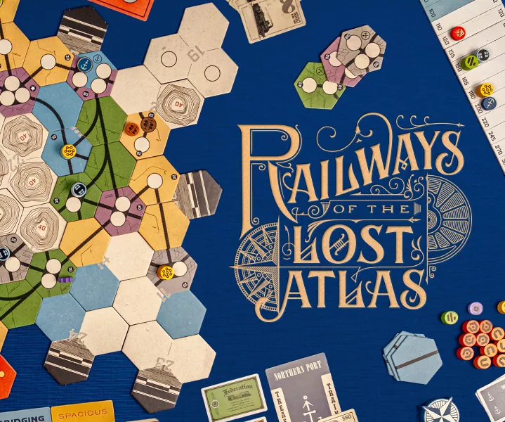 Railways of the Lost Atlas is an 18xx style game set in a shifting landscape. The map, built by players as part of setup, is different for each play. Players take on the role of individual investors, launching minor companies, building infrastructure, and generating revenue to increase their stock value or reinvest in the company. Minors eventually merge into majors that have more freedom to expand their operations.