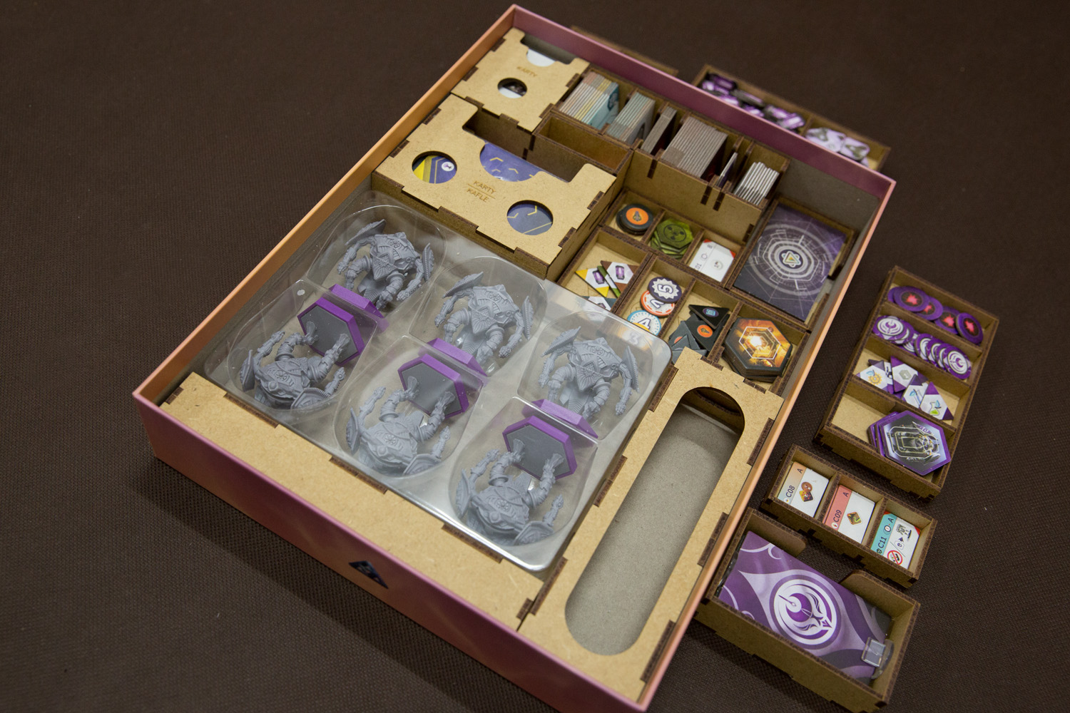 Inserty pasujące do gry Anachrony oraz dodatku Szczeliny Czasu. Insert do gry podstawowej (do kupienia tu) mieści wszystkie elementy z gry podstawowej oraz umożliwia dołożenie kart oraz części żetonów z dodatku. Insert do pudełka z dodatku mieści pozostałe elementy z dodatku. Oba pudełka zamykają się całkowicie. Insert mieści karty w koszulkach klasy Premium bez ograniczenia grubości. Na zdjęciach karty w koszulkach Portal Games (100 mikronów).