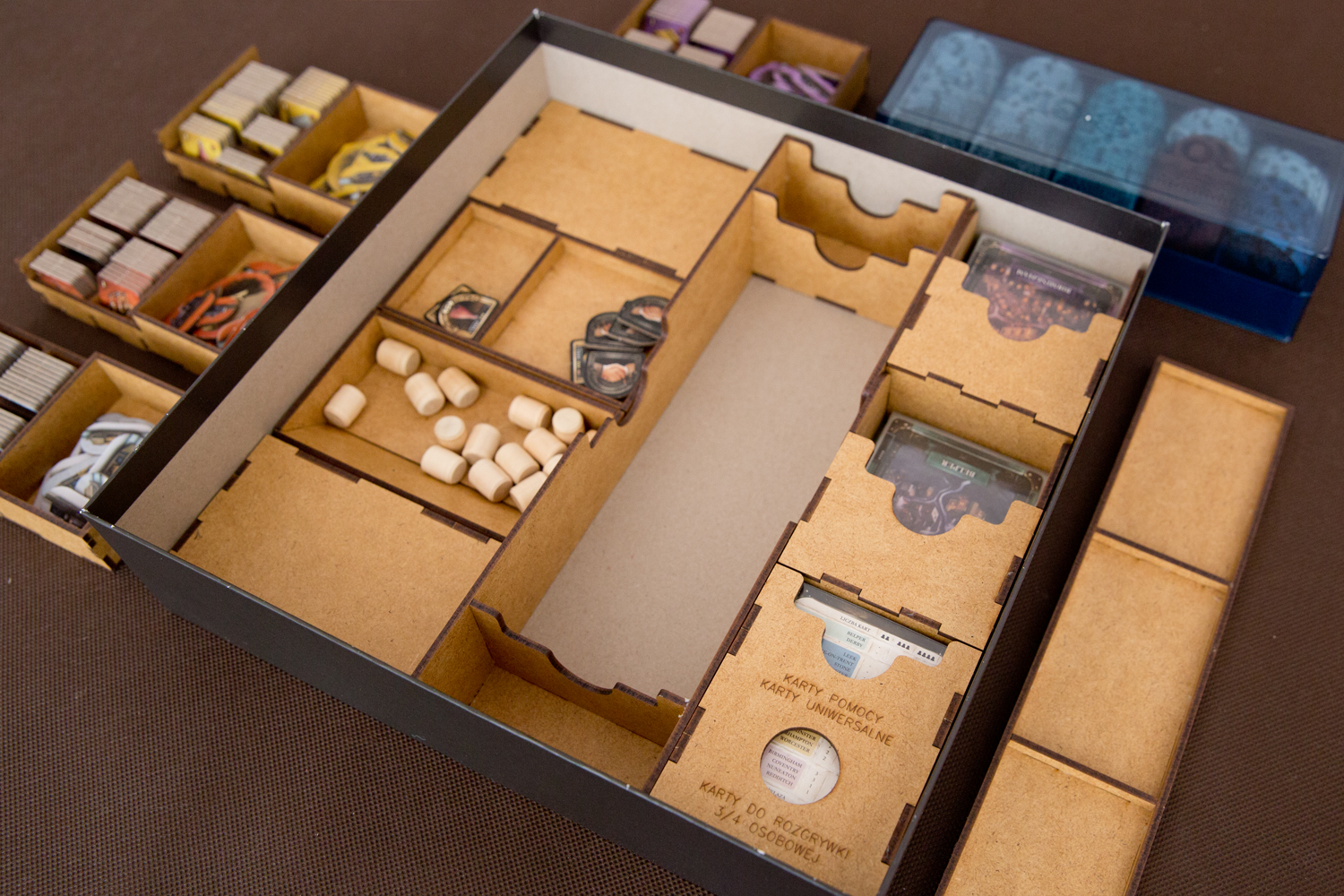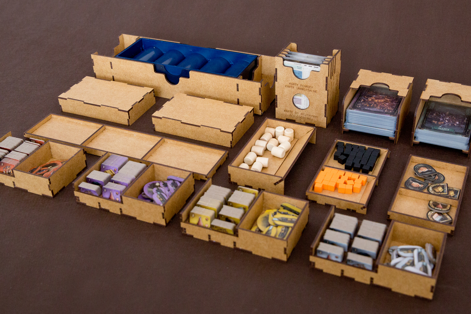 Insert pasujący do gier Brass: Birmingham (wersja deluxe). Insert mieści karty w koszulkach klasy PREMIUM (na zdjęciach karty w koszulkach Gamegenic Prime 100 mikronów). Insert nie pasuje do zwykłej wersji.