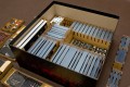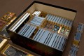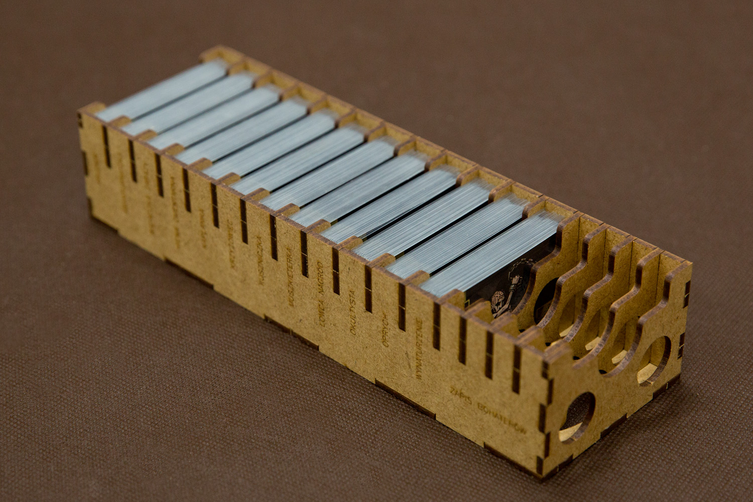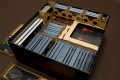 - w pudełku po podstawce wkładamy 3 tacki z figurkami oraz notes pod jedną z tacek - pudełko nie domyka się około 12 mm,