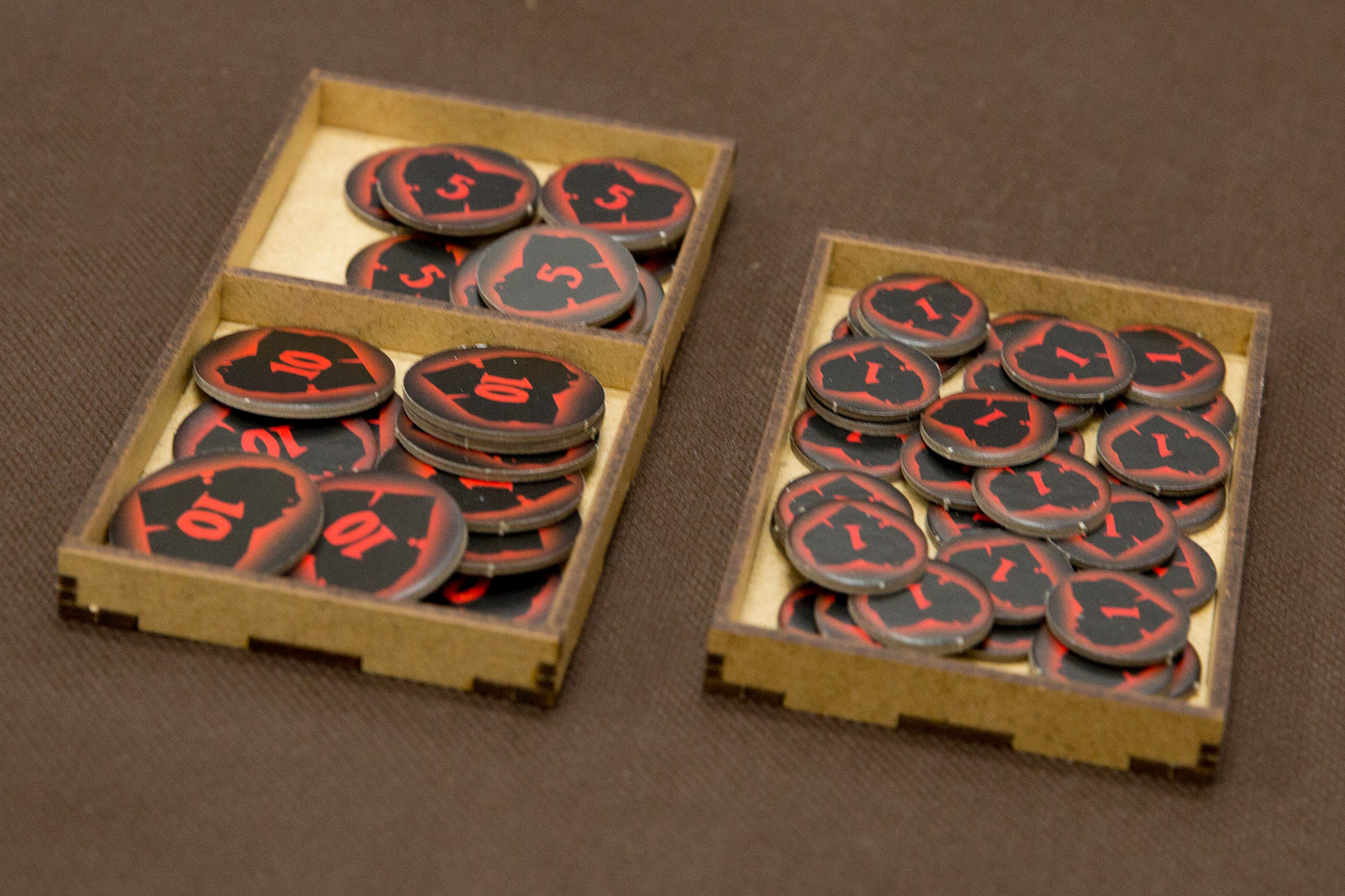 - pojemniki na żetony stanowią gotowe tacki do wyłożenia na stół i pozwalają utrzymać porządek,