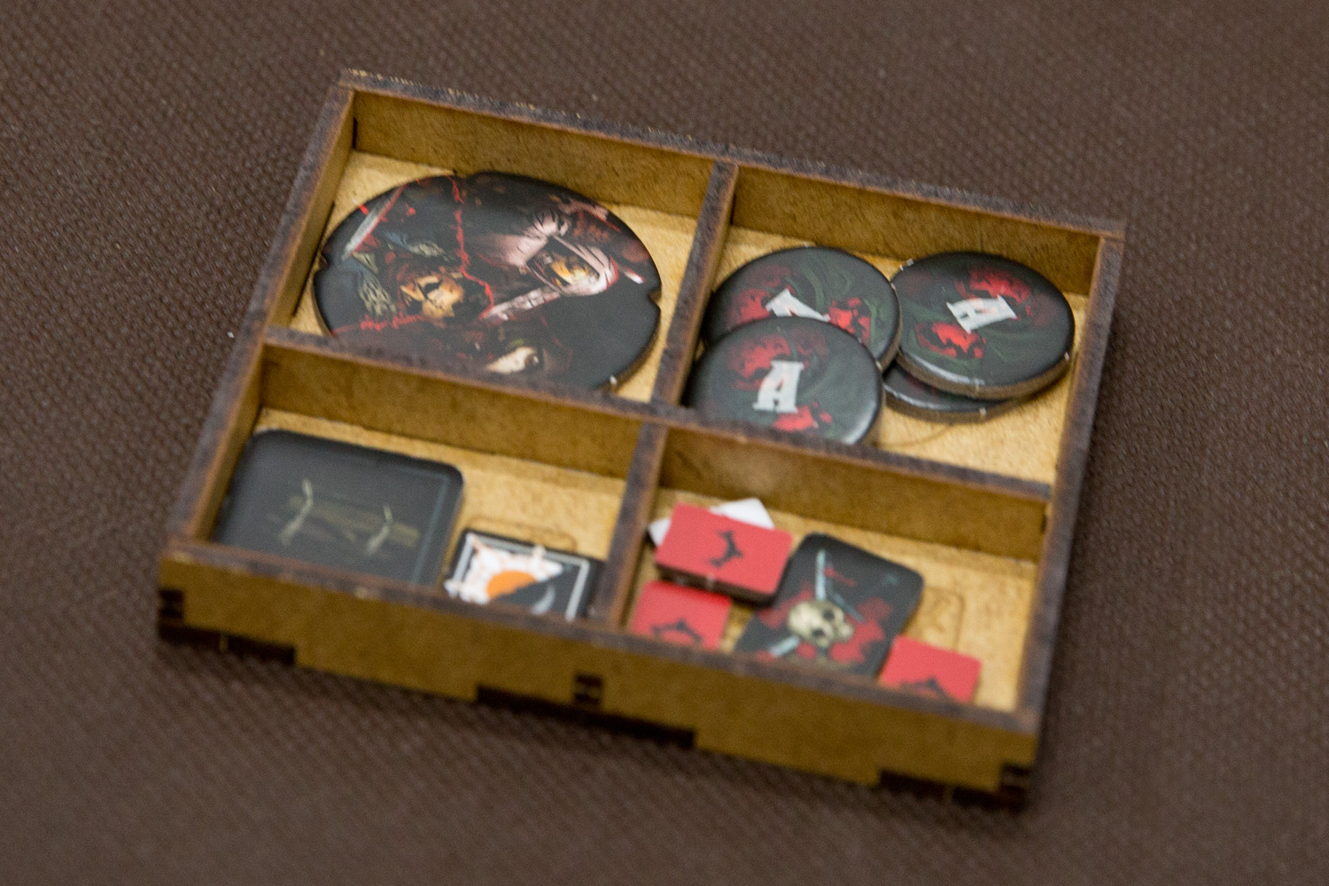 Insert pasujący do gry Darkest Dungeon wraz z dodatkiem The Crimson Court oraz Muszkieterką. Insert jest niezależny od dodatku i obsługuje również samą grę podstawową.