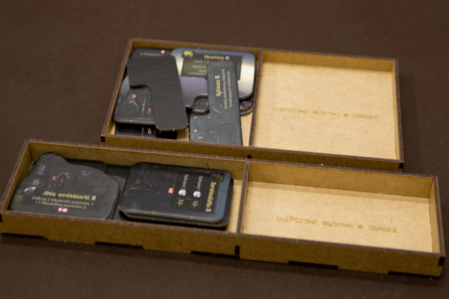 - pojemniki na żetony ulepszeń budynków Osady posiadają dodatkowe sloty na odłożenie żetonów w momencie "zapisu" kampanii,