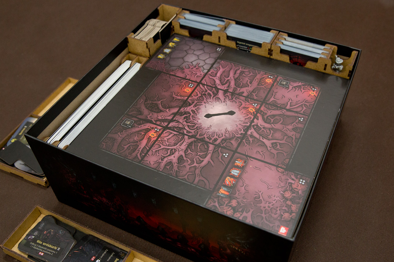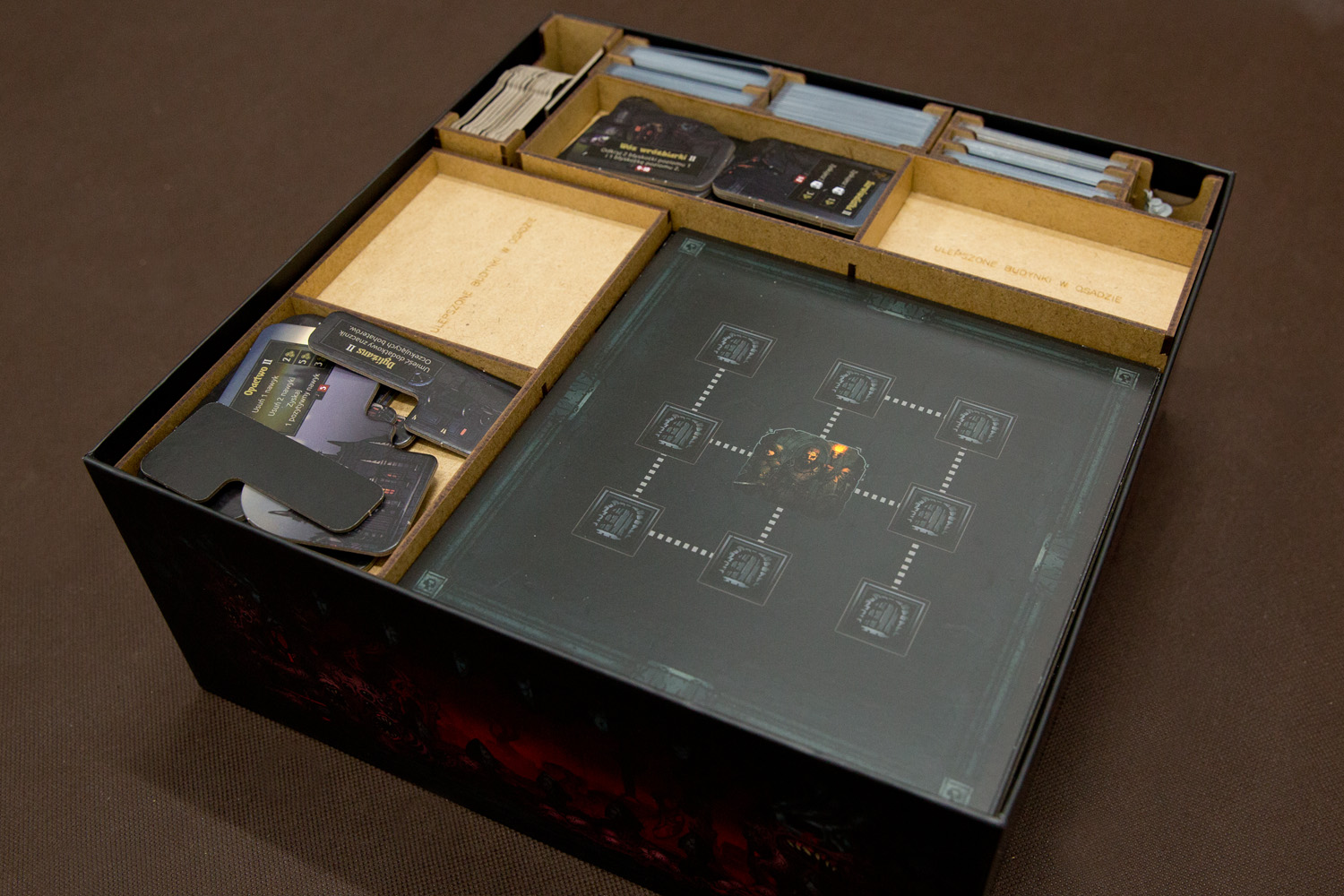 - duże karty potworów / bossów (140x140) przewidziano miejsce umożliwiające je zakoszulkowanie / zalaminowanie.