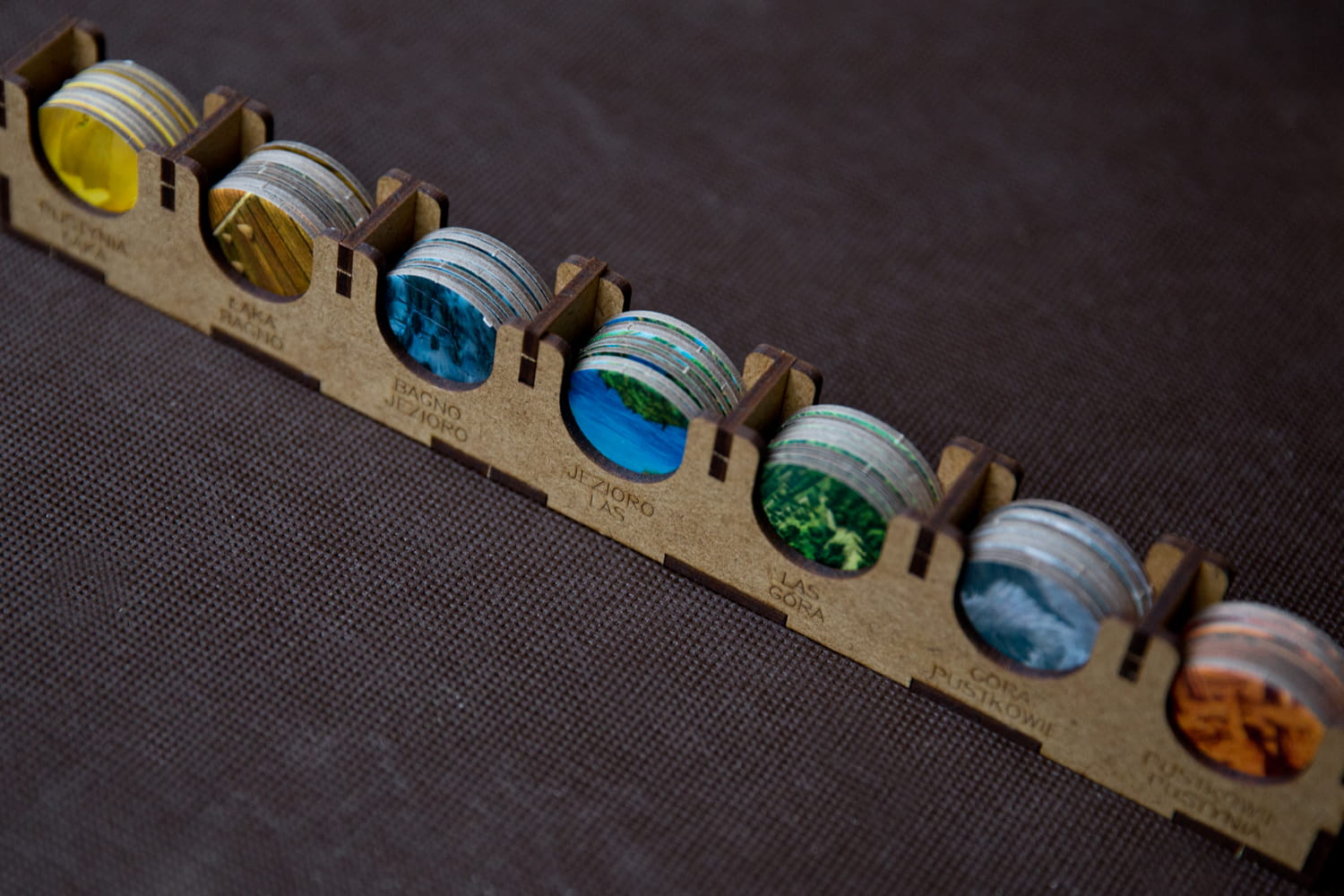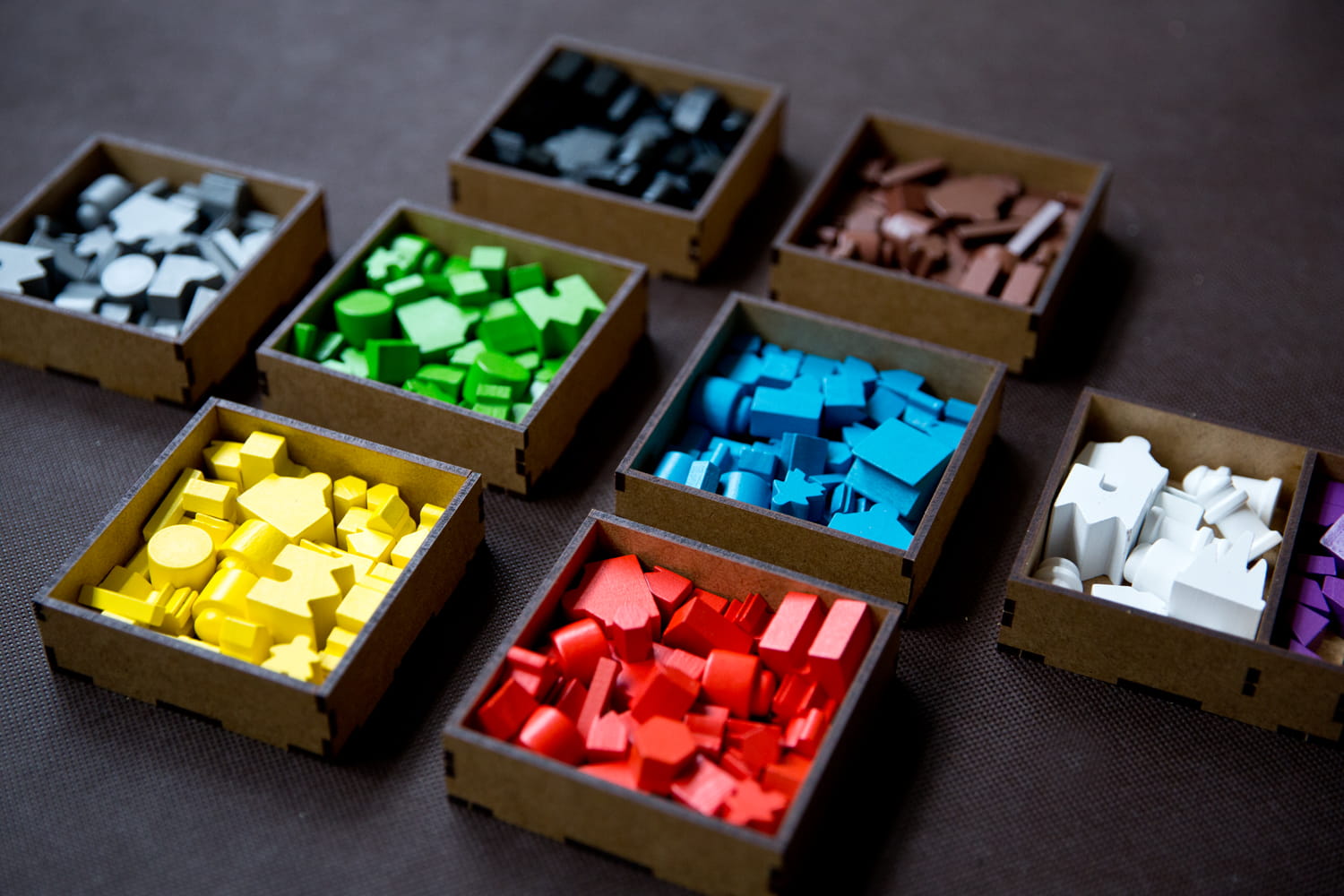 - 7 pojemników na drewniane komponenty w 7 kolorach (dla każdej z Frakcji),