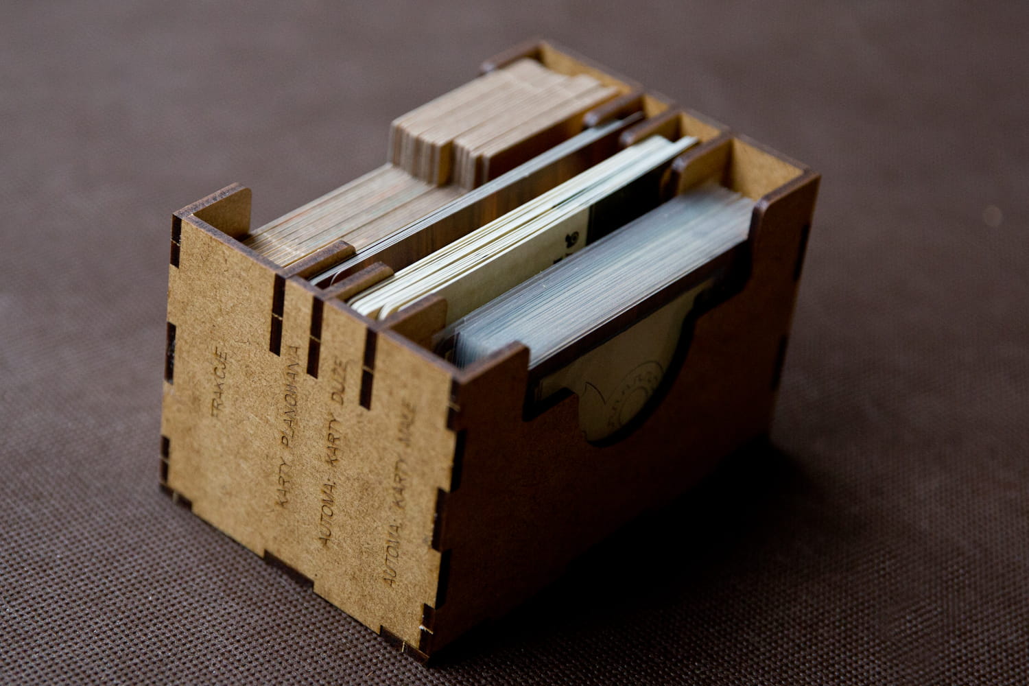 - 1 pojemnik na kafle Frakcji, karty Planowania, karty Automy,