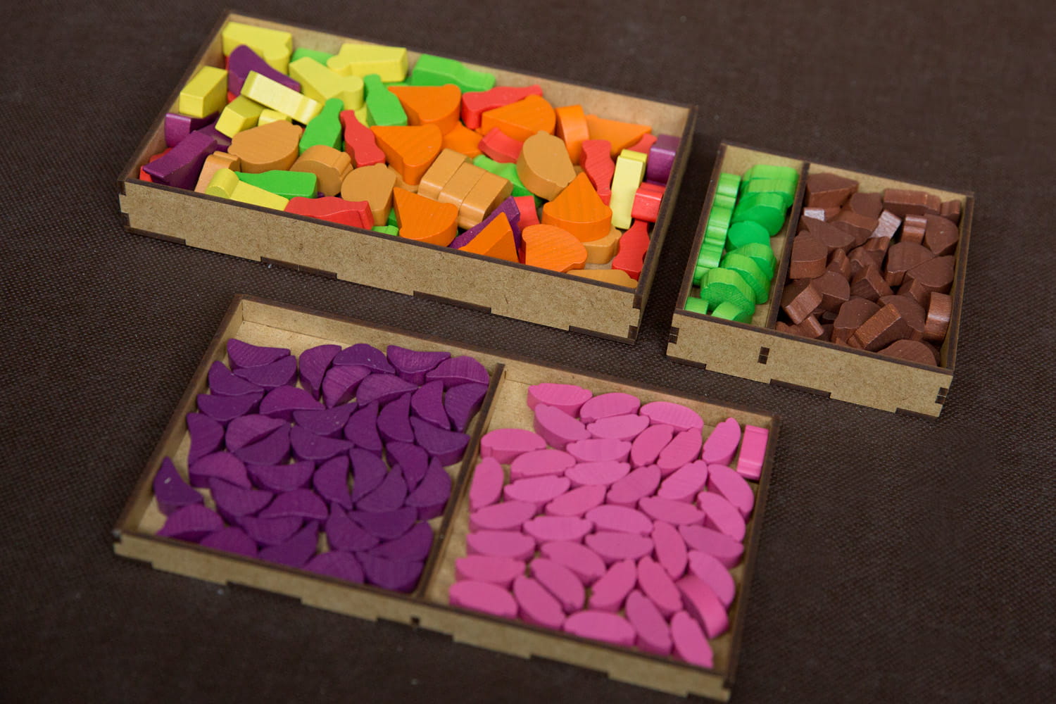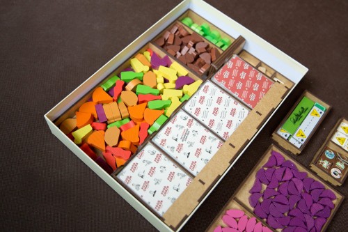 - 3 pojemniki na drewniane żetony i tor kolejności,