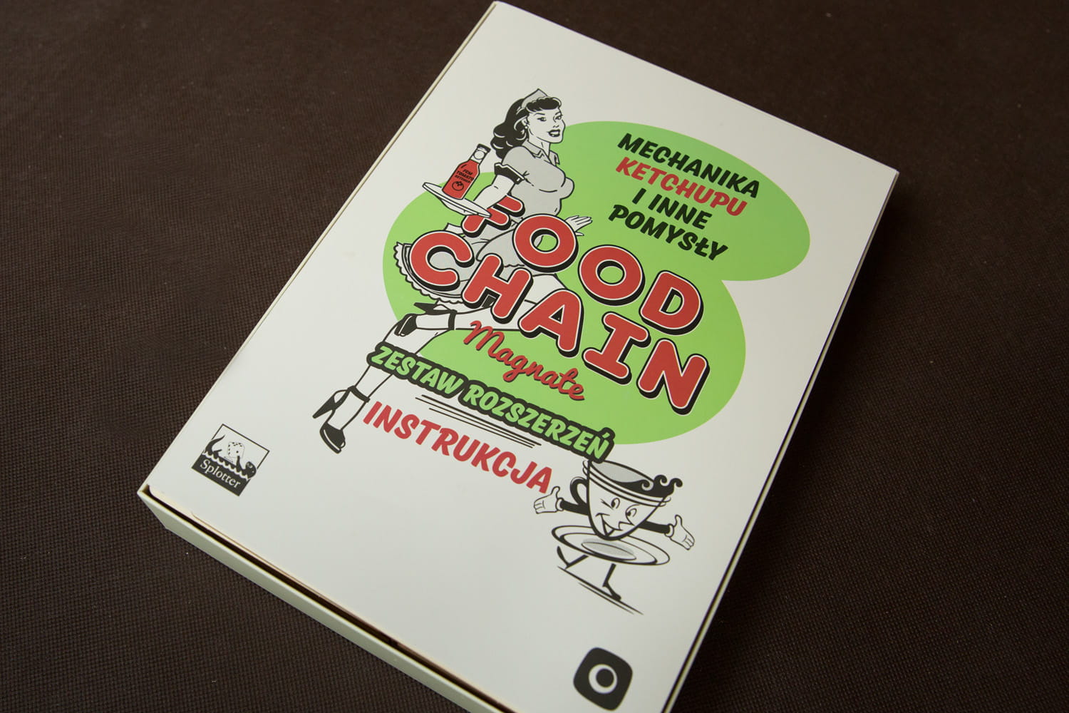 Insert pasujący do dodatku Mechanika Ketchupu i Inne Pomysły do gry Food Chain Magnate. Pudełko z grą domyka się bez uniesienia wieka. Insert oprócz pojemników na karty, żetony i pozostałe komponenty gry zawiera dwie tacki - stojaki na karty pracowników i osiągnięć. Tacki należy stawiać na podłożu z materiału (obrus, mata, sukno, itd.) w celu zapobiegania ślizganiu się kart w stojaku. Insert przewiduje przechowywanie kart w koszulkach. Poniżej opisane są warianty koszulkowania kart.