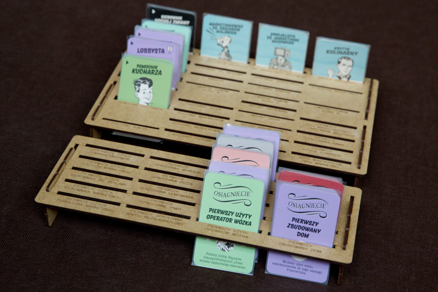 - podstawki na karty optymalizują miejsce na stole i ułatwiają rozgrywkę,