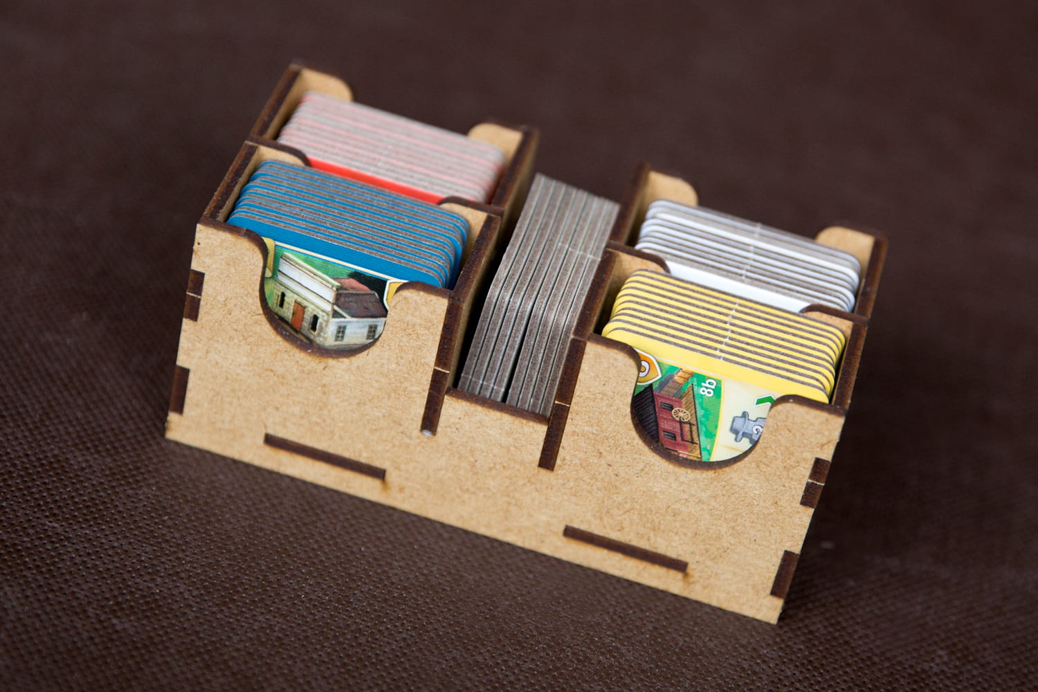 - 1 pojemnik segregujący żetony budynków neutralnych i budynków prywatnych,