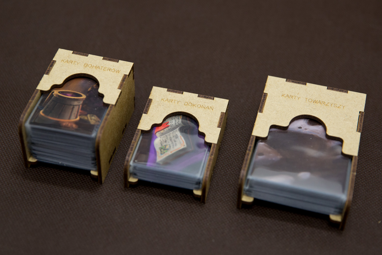 - 3 pojemniki (podajniki) na karty Towarzyszy, Bohaterow, Dokonań,