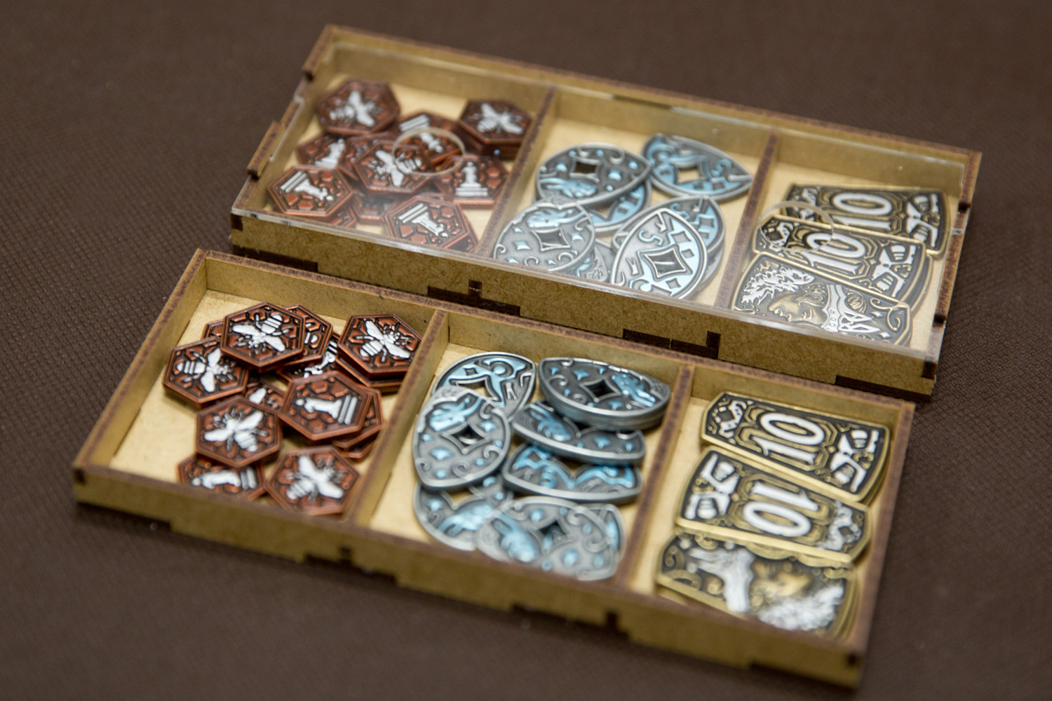 - insert zawiera dwa pojemniki na monety co ułatwia ich dostępnośc dla Graczy przy stole,