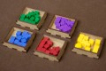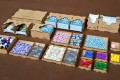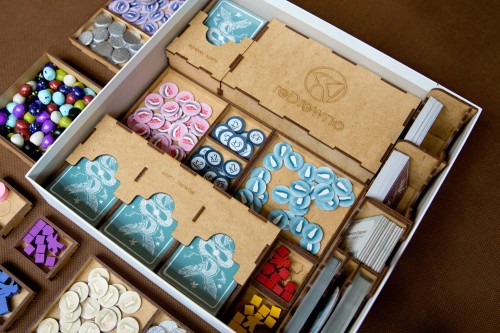 - pojemniki na karty i kafelki wykładane na planszę stanowią podajniki i zapobiegają rozpadaniu się stosów podczas rozgrywki,